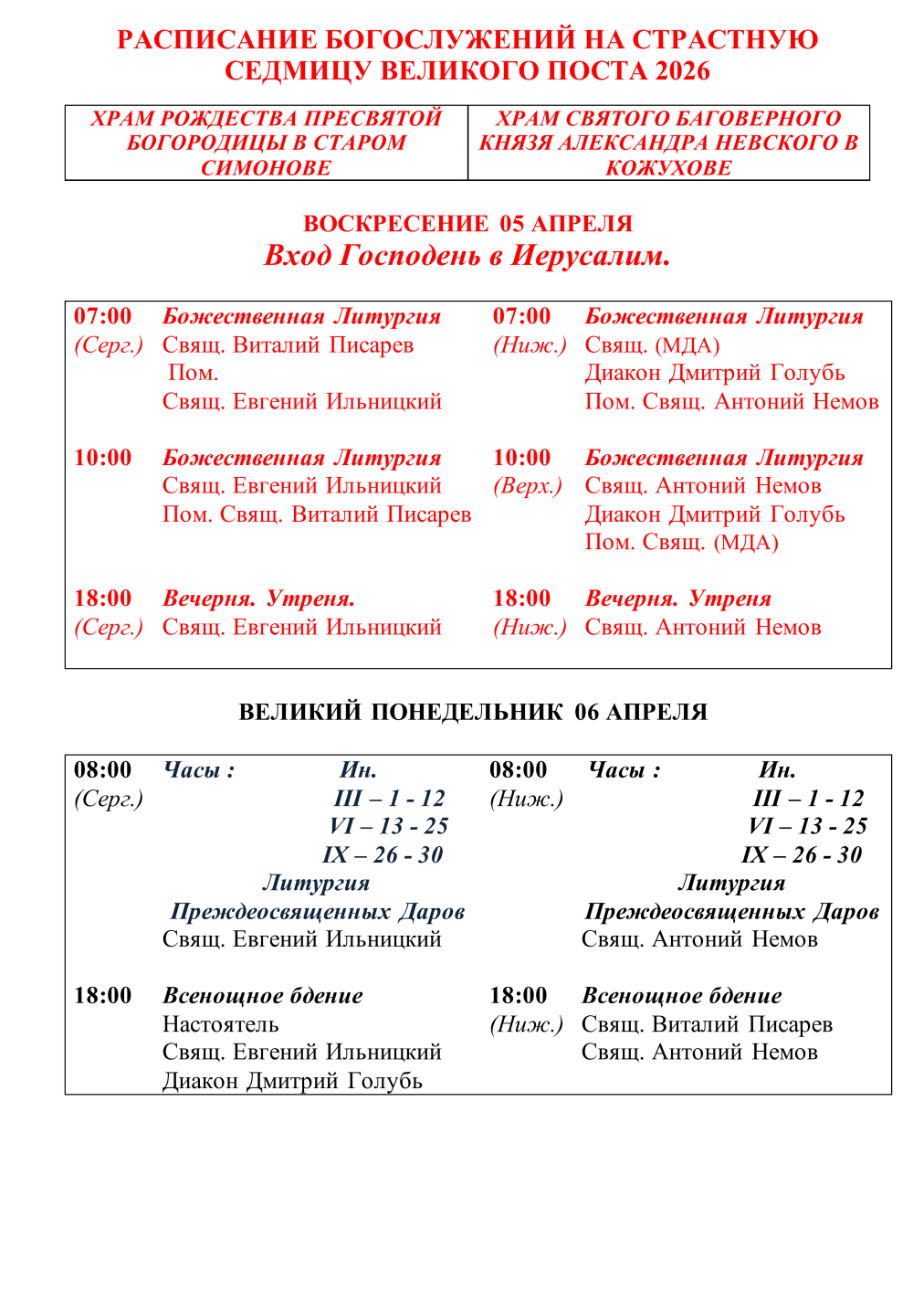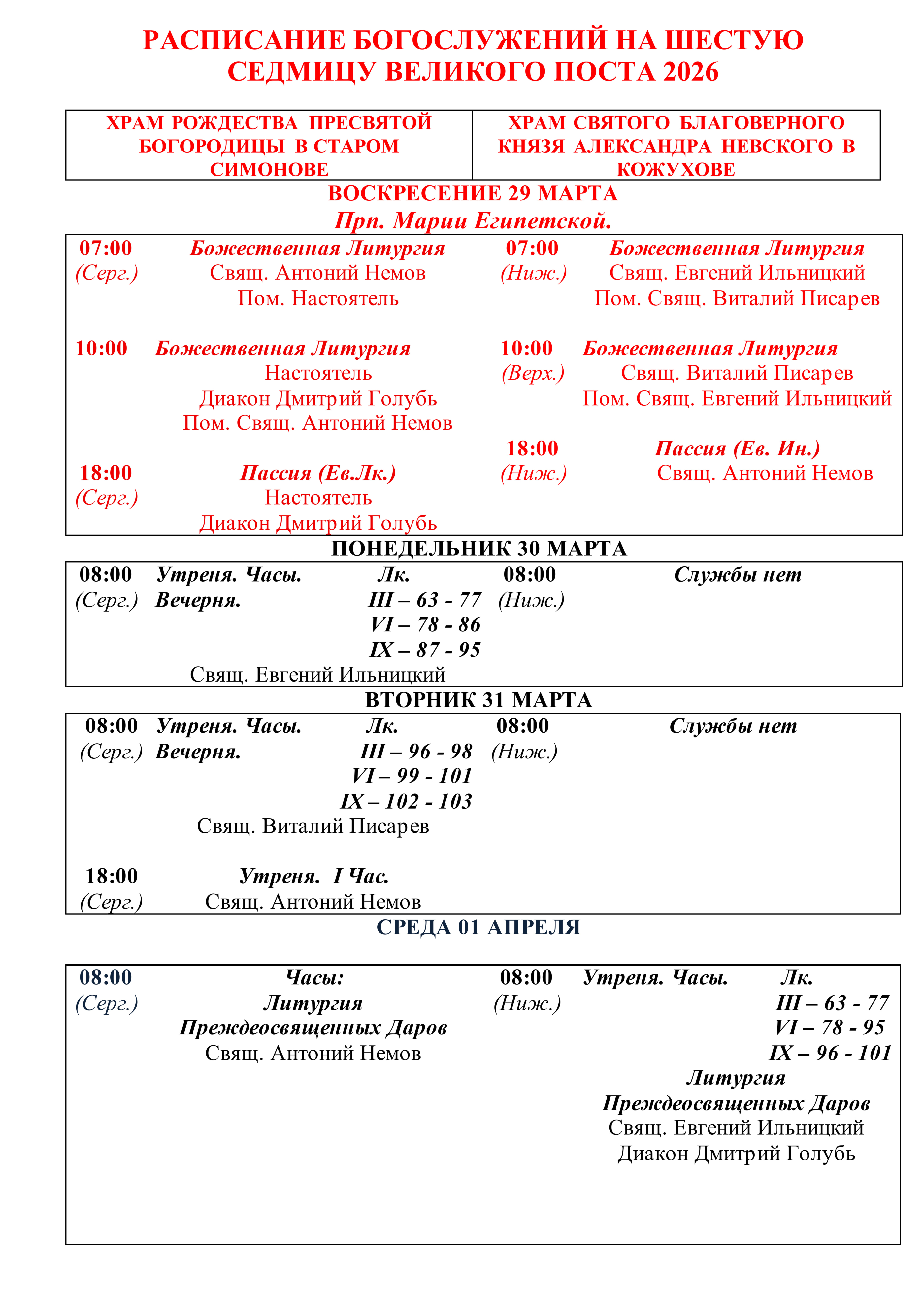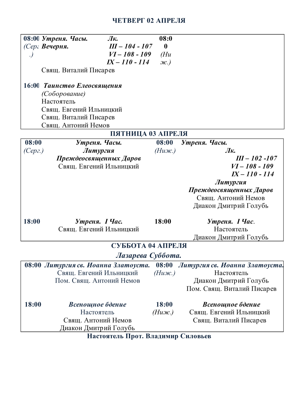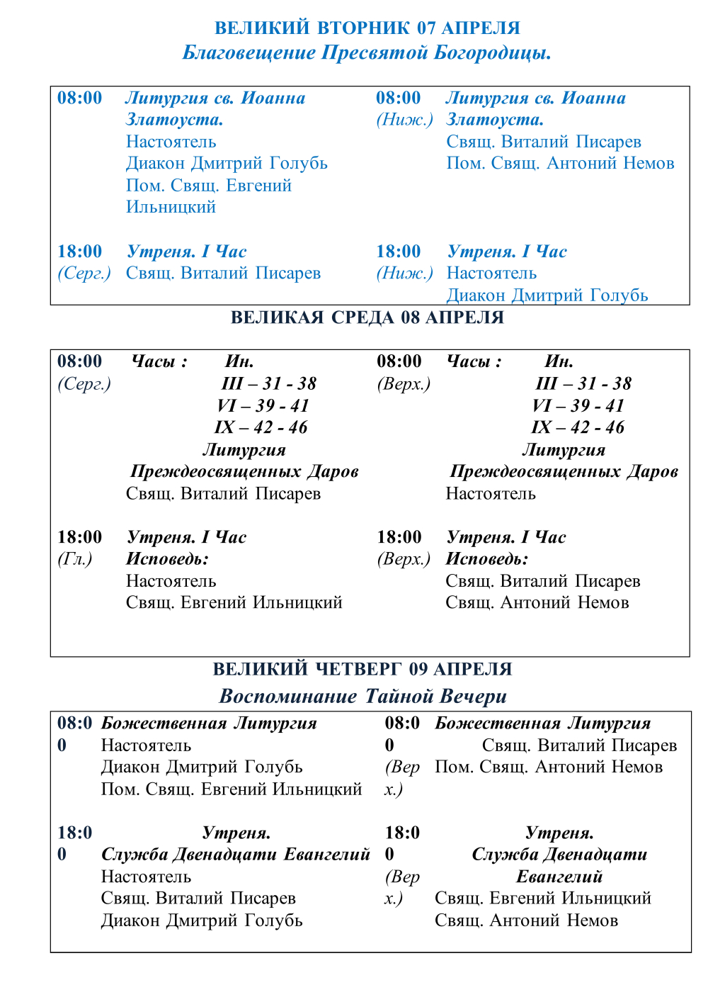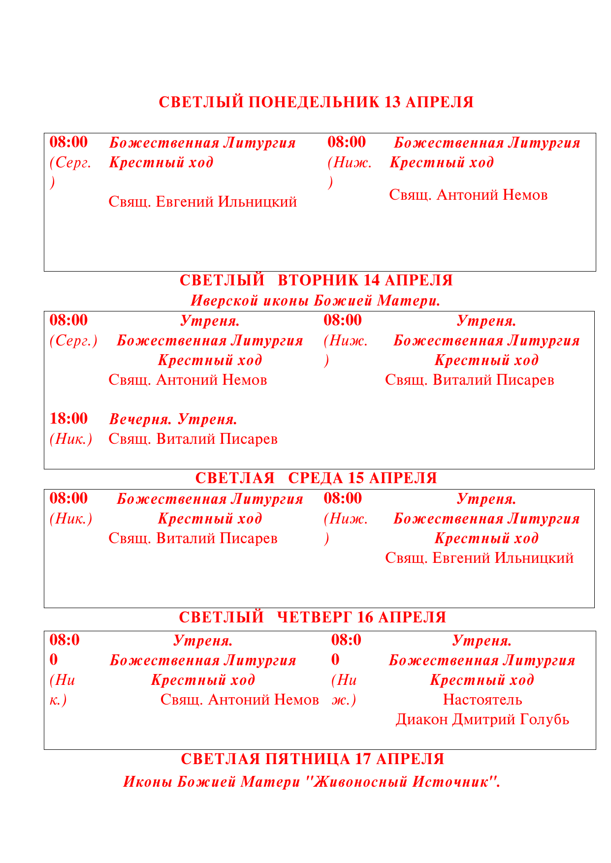 Все ранние расписания богослужений находятся в архиве. Предоставление по запросу.