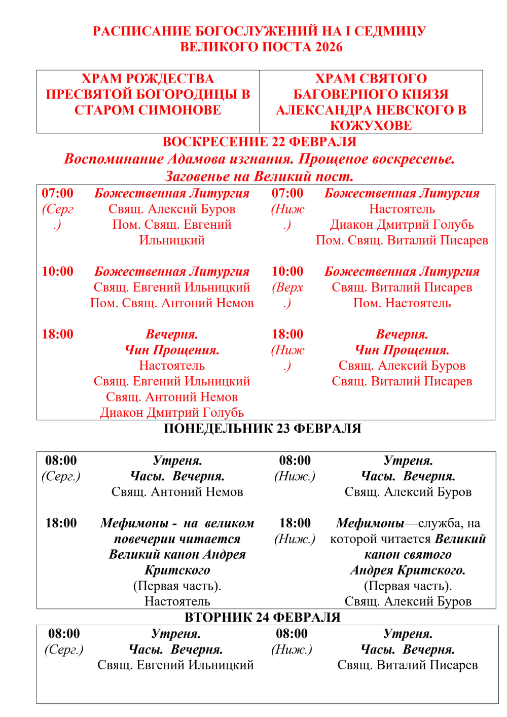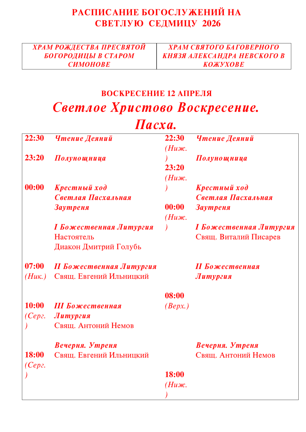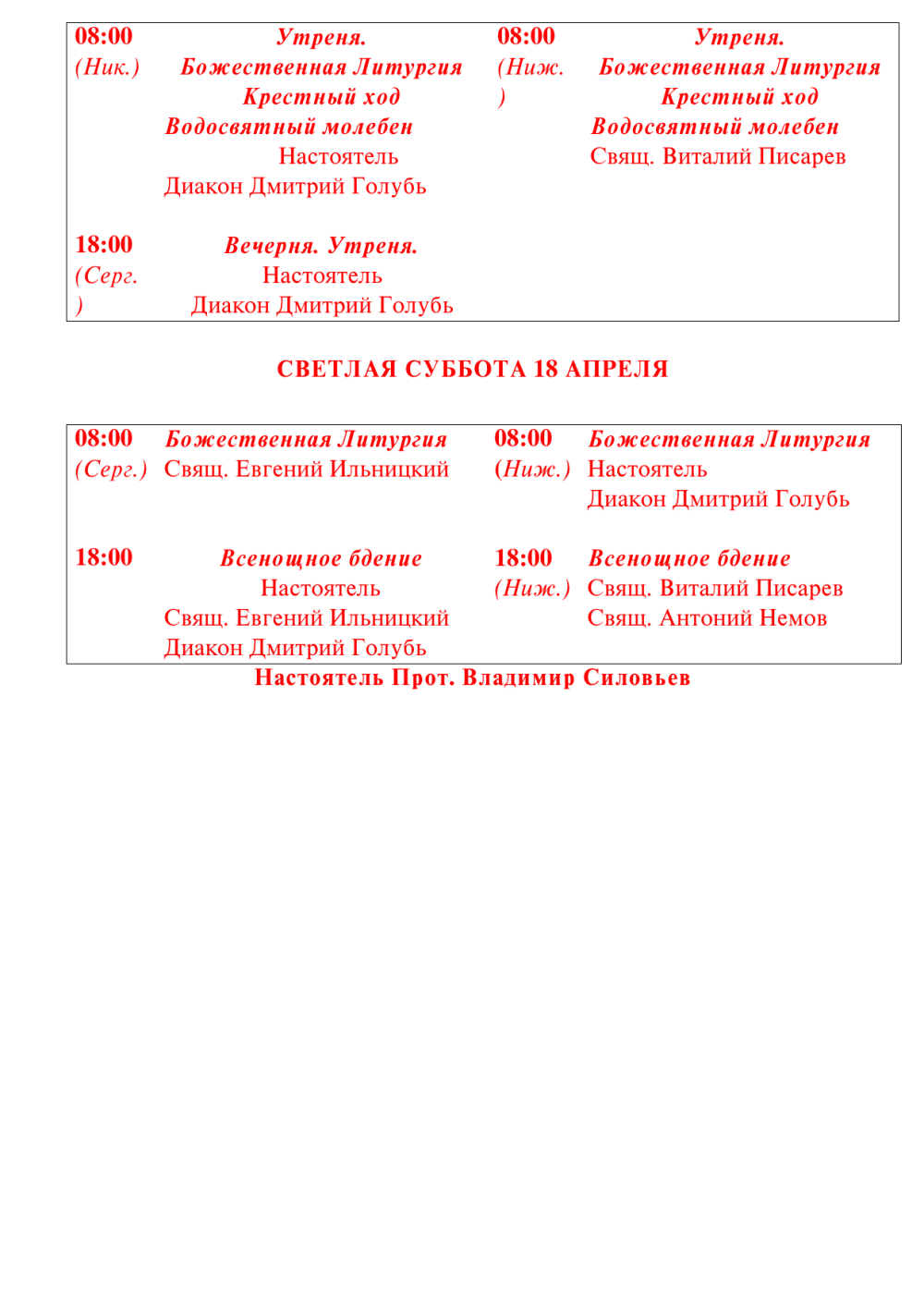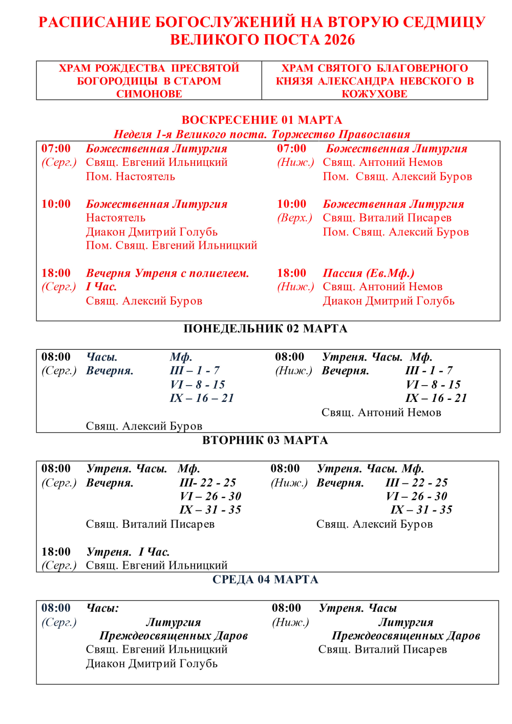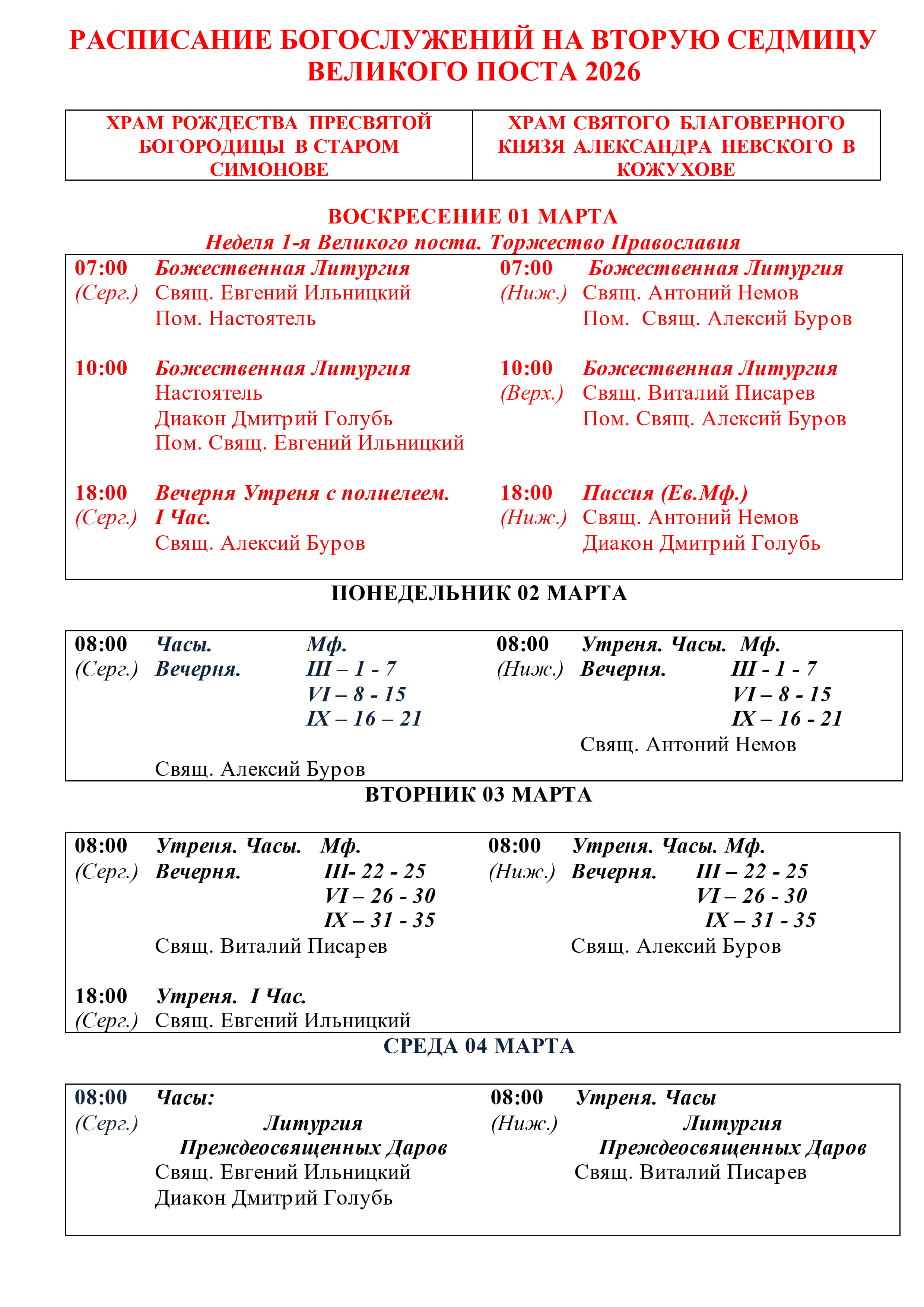 Все ранние расписания богослужений находятся в архиве. Предоставление по запросу.