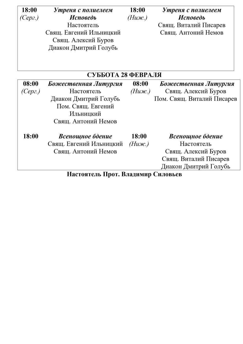 Расписание Богослужений