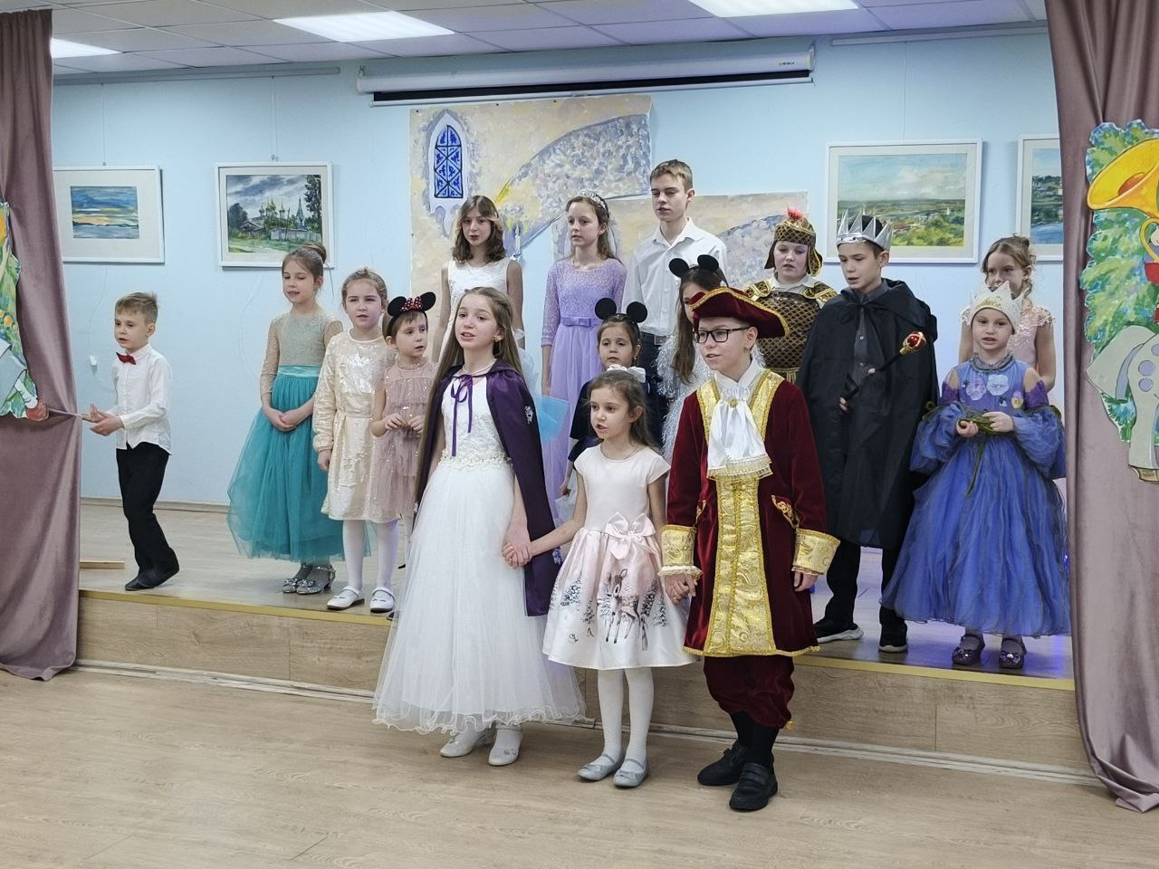 Затем преподаватели воскресной школы Кузнецова Евгения и Купцова Мария представили публике подготовленный к празднику воспитанниками воскресной школы спектакль «Щелкунчик» по сказке Гофмана. Декорации выполнил художник Михеев Виталий Николаевич.
